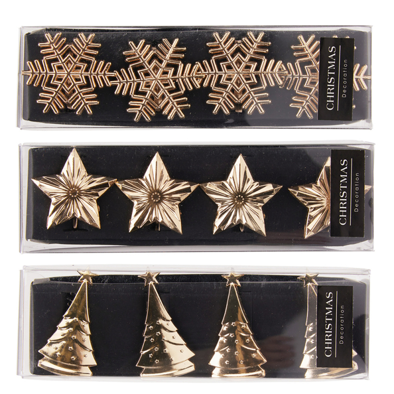 Elegantný set štyroch dekoračných zlatých krúžkov na servítky dodá vášmu sviatočnému stolu iskru výnimočnosti. V jemnom lesku zinku sa odráža svetlo sviečok a vianočná pohoda – presne tak, ako si ju predstavujete.